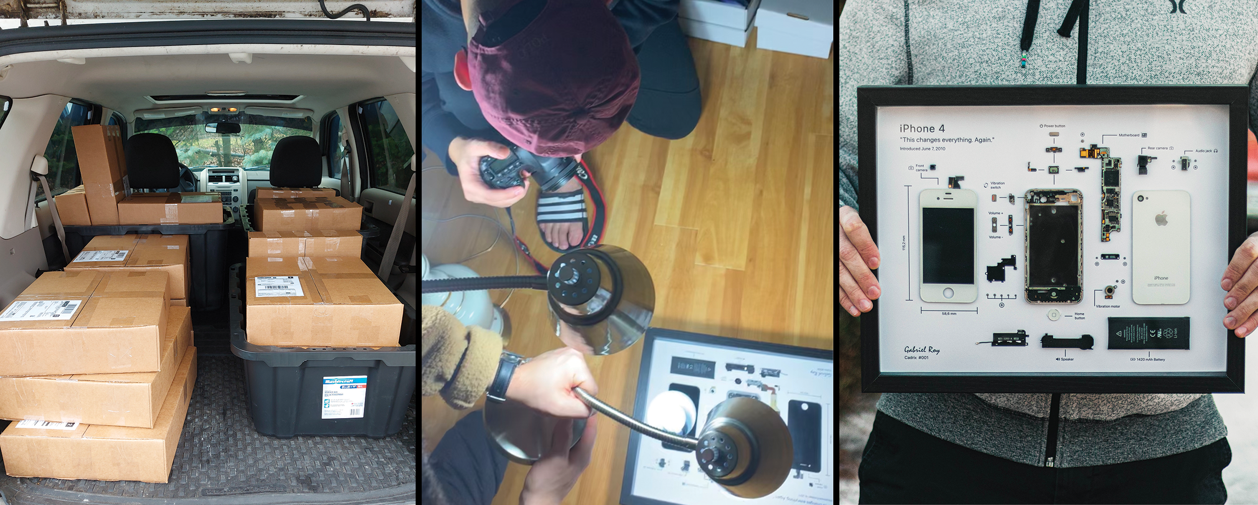 En abril de 2021, hicimos nuestra primera colaboración, que dio como resultado nuestros primeros pedidos. En total, reciclamos 50 iPhones que no funcionaban y les dimos una segunda vida en nuestros marcos.